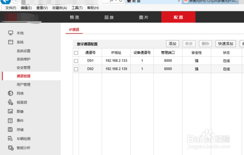 网页登录硬盘录像机设备网对应的IP地址,添加设备网摄像机。并进行图像及存储相关设置。
