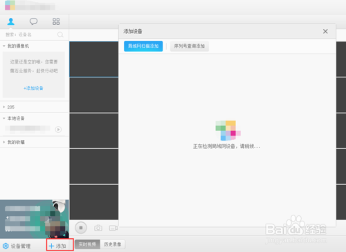 软件会自动搜索在局域网下的视频设备,如果你的终端和摄像设备在同一个局域直接就可以连接;如图所示;