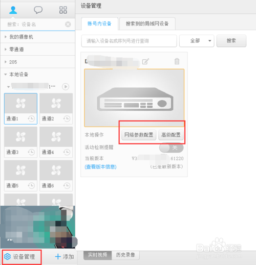 返回萤石PC客户端主界面,点击左侧硬盘录像机查看各通道是否显示正常,若不正常,点击左下角设备管理--选择异常的硬盘录像机(查看版本信息,更新版本)--查看网络配置是否正常--高级配置--萤石云是否勾选--如提示设备不在线(回看版本是否更新,网络配置是否正常,摄像机是否正常添加)。
