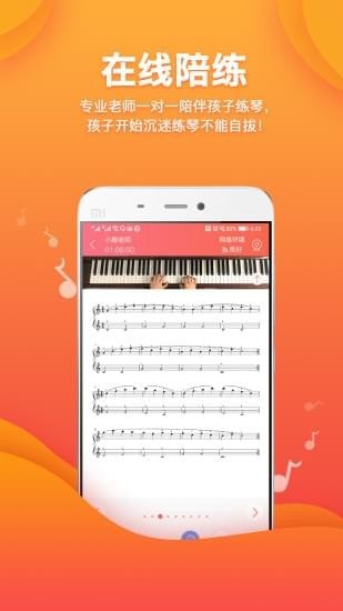 快陪练app,陪孩子快乐练琴!快陪练APP是未来橙教育旗下,提供4-16岁琴童的真人在线钢琴陪练产品,包含在线约课、上传乐谱、一对一在线陪练互动、课后反馈等功能。