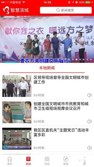 【权威资讯】在智慧滨城app可查看滨城广播电视台及各大媒体的精品内容,进行各类突发事件的权威应急发布。