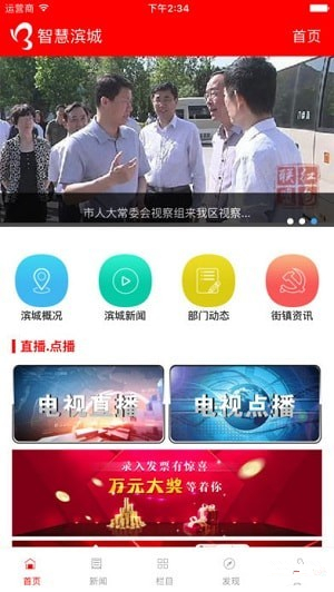在智慧滨城app可查看滨城广播电视台及各大媒体的精品内容,进行各类突发事件的权威应急发布。