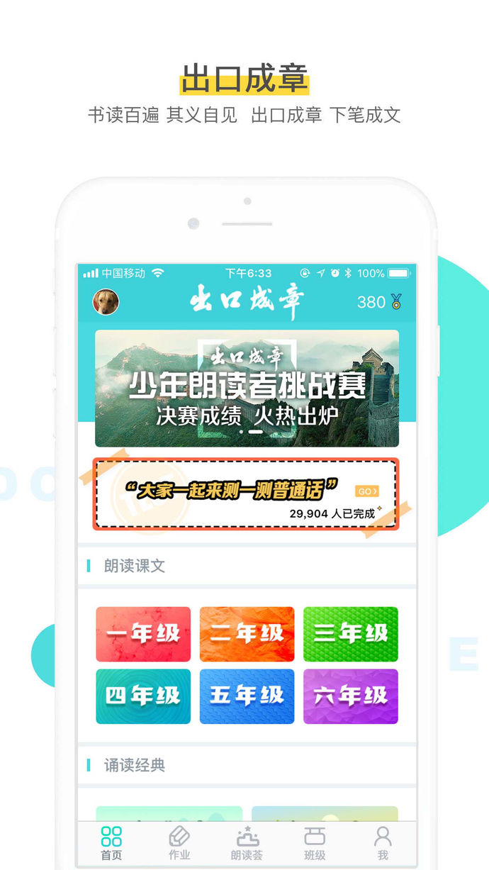 出口成章是专门为小学生打造的一款语文学习服务产品,致力于为孩子提供朗读评测和个性化的学习内容,让每个孩子日积月累、出口成章。