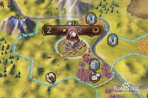 11、开拓者到了城市图案那里后,就可以建造第二个城市了。用鼠标左键点击所到图案那里,这时候,就建造了第二座城市。就这样循环的发展。