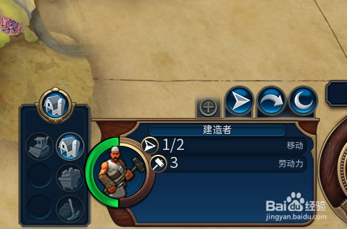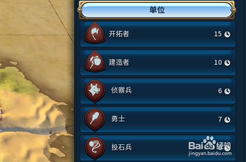 3、城市建好后,你就会发现游戏地图右下出现了勇士,同时又个齿轮代表了选择生产项目,点击齿轮,这时候出现了你需要建造的生产项目种类,选择建造者,毕竟,城市需要建造者。