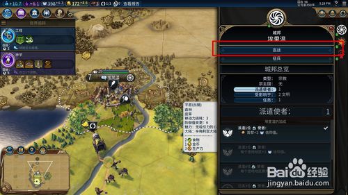 7、几个回合后,建造者生产出来了。把建造者移至到推荐的改建设施。有矿,有农田等。