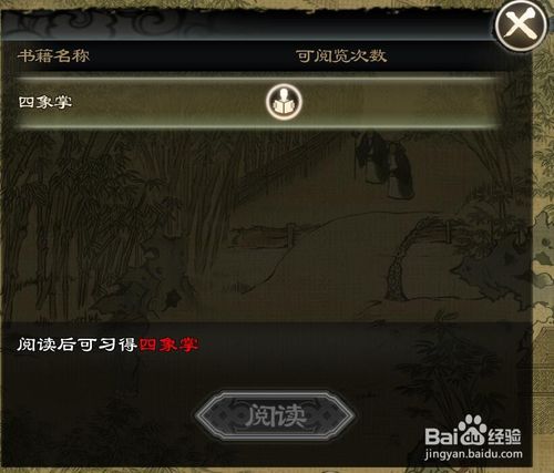 6、里面可以选择好自己要读的书,点击阅读就可以,阅读完毕即可拥有该武功。