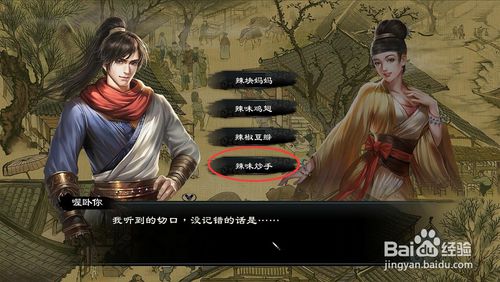 5、然后老板娘就会问起,刚才红字中的任意一项,刚才的红字中的辣味抄手就起到用处了,填上然后再战斗胜利即可。