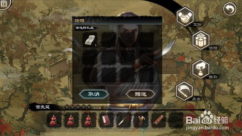 6、另外,打工有可能会叫你送东西,根据NPC所在地区去送就OK,如果当天NPC不在,你可以选择换个时候去送,隔一天再去看在不在,再点击赠送就能将货物送给他。