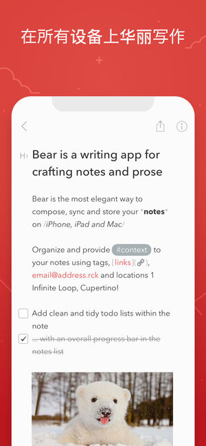 - 通过iPhone和iPad上的特制快捷工具栏熊掌记app一键编辑格式;- 用你美妙的嗓音通过Siri在熊掌记app创建新的笔记;