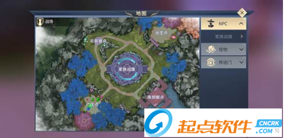 进入活动地图之后,我们可以看见,整个场地被划分成三个区域,两端为双方家族的出生点和复活点,中间则是主战场。在活动期间,一旦被击杀,就只能回到出生点。