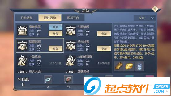 联盟刺探 :建议组队完成帮助清缴间谍,参加等级最低30级,活动时间10:00-23:59.同样在每日联盟日常活动加成期间完成,可获得额外奖励。