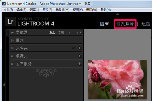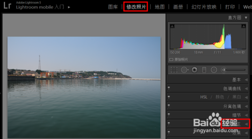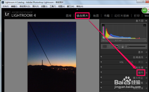 选择Lightroom的修改照片选项,然后在右侧选择点开细节命令。