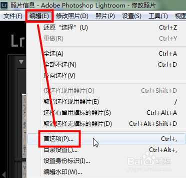 lightroom更改界面语言方法打开lightroom后点击编辑-首选项。