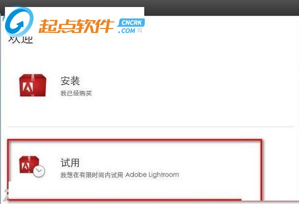 4、进入安装后,出现了安装与试用两个选项,这里务必选择“试用”,否则接下来将无法破解。