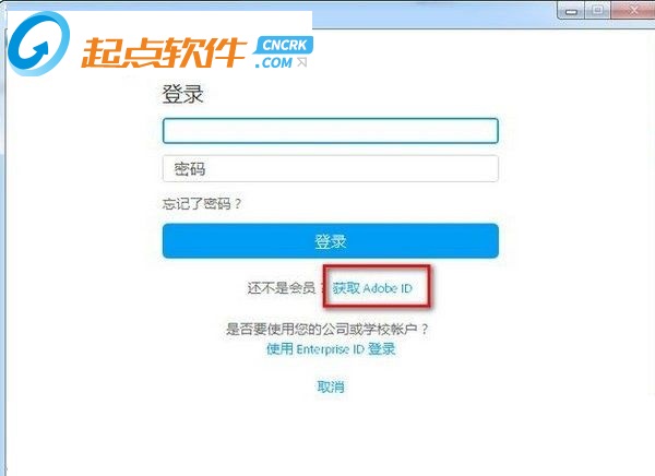 5、随狗我们进入登录界面,我们需要输入Adobe ID账号及密码进行登录,若用户还没有Adobe ID,请用点击“获取Adobe ID”来进行注册。