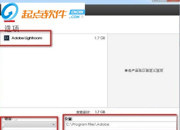 7、随后进入安装选项,我们选择Adobe lighfrom,然后选择语言与安装位置。