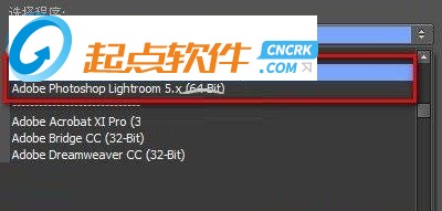 11、我们在破解界面中的“选择程序”中的下拉菜单中选择“Adobe Photoshop Lightroom 5.X CC(64bit)”这一选项(如果用户安装的32位,我们破解32位的即可),然后点击“破解”按钮。
