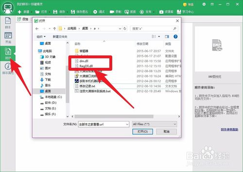 4、然后将dm.dll和regdll.dll两个文件放入到附件中。