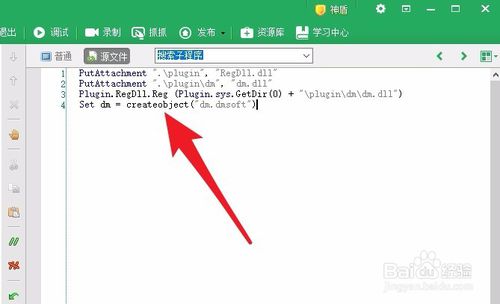 5、打开脚本编辑器,输入图中的内容并运行即可完成大漠插件的注册。