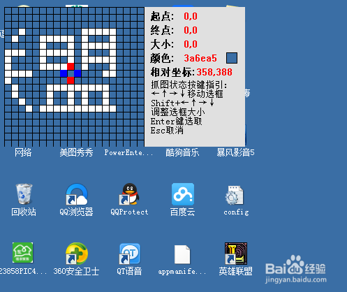 6、出现鼠标提示时,大漠综合工具界面会自动隐藏,这时鼠标移动到哪点坐标都会显示那一点的坐标细节(包括颜色值和桌面坐标)如图。