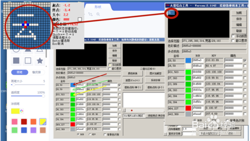 9、跟着就要鼠标点击一下图上红色箭头所指的小色框(颜色不论)。点击其他小色框效果是一样,不过为了方便你的习惯和了解!因为你用了小色框后记录的就你马上点击的坐标点的颜色值和坐标的记录!