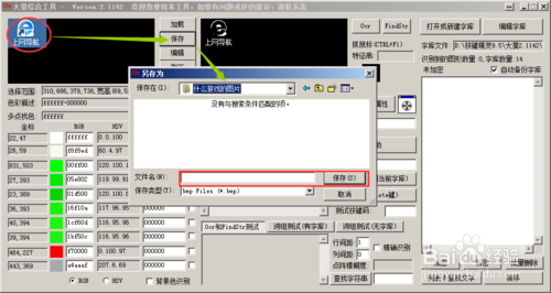 13、抓图方法和抓字一样,先按Ctel +1 键去抓去你想抓的图,一定覆盖你想的范围。覆盖好了的图也是回车键,会显示出在大漠综合工具上,按图解点击保全到你想保存文件夹。命名一定和图片有关,不然多图后会乱能找到。点击保存就好了。