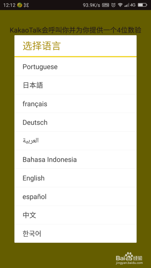看到这个界面后是你接听电话的语言选项,如果的韩语很好就可以直接点击接受呼叫,如果不太好那就点击小箭头选择语言,就会出现第二上图片的选项,选择好语言后点击接受呼叫