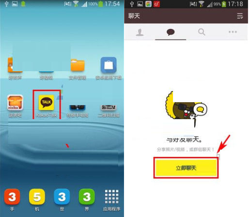 1)打开【KakaoTalk】,在【聊天】界面中点击【立即聊天】。(如下图)
