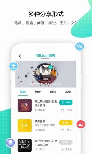 思享app是封闭式内容分享社群应用。用户可以在思享app创建封闭的付费圈子或免费圈子,思享app以视频、语音、付费(免费)问答、享说动态的方式,分享知识和经验,与圈内成员交流、互动。
