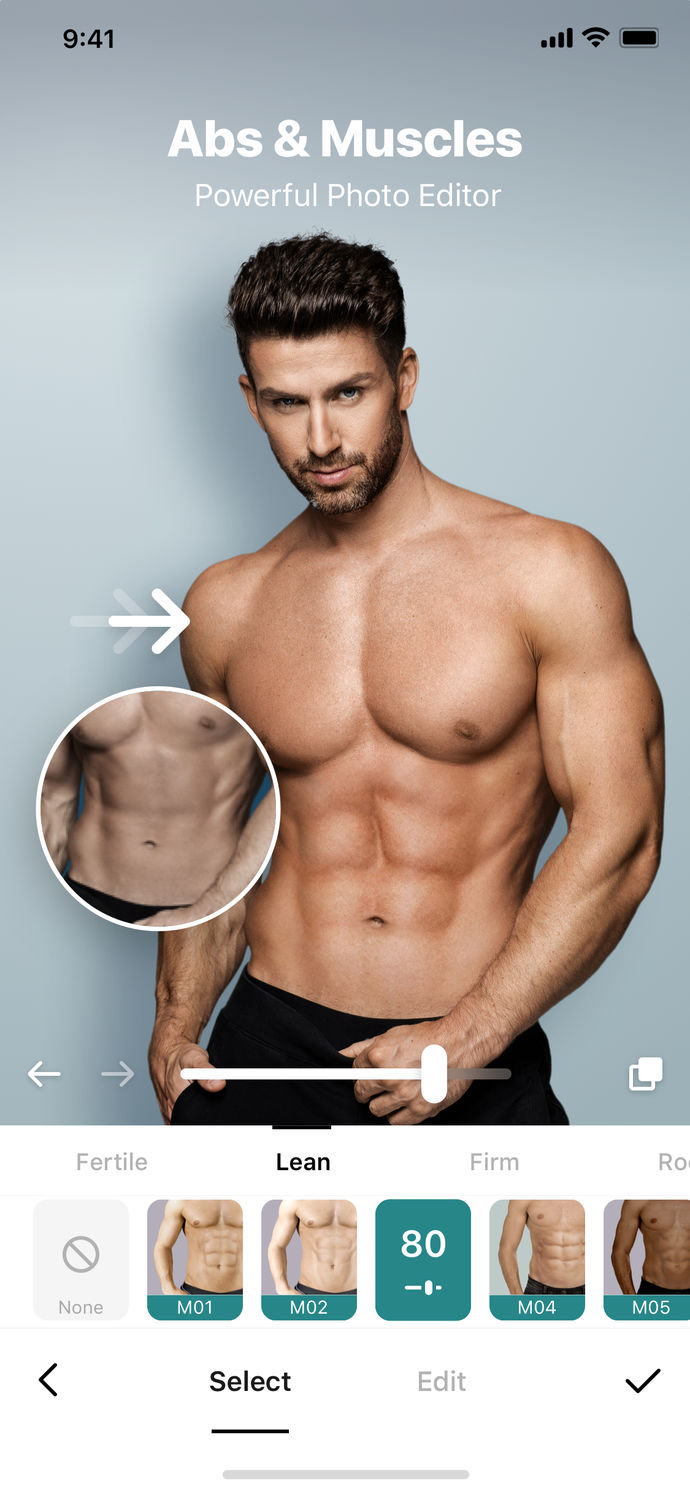 BodyApp为男性和女性分别定制了胸部/腹部/修饰功能,您只需几步操作就能达到完美的模特身材;