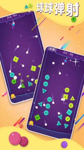 《球球弹射》是一款需要充分利用反弹来发射小球的游戏。游戏操作简单,只需点击屏幕即可控制小球的方向,尽可能多次的反弹撞击方块,积分会越高哦。