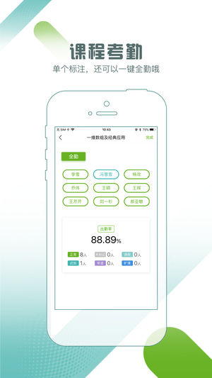 3.在线考勤:移动端对课程的出勤情况进行填写,填写完成后,与该课程相关人员均可看到该课程相关情况