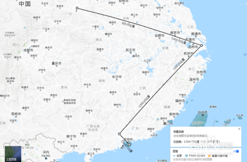 当然,如果想要知道比如从西安到上海再到广州再到香港的总距离,也是可以实现的,只要分别依次点击这些城市的位置,下方就有显示距离。且每小段城市之间的距离也是标出的。