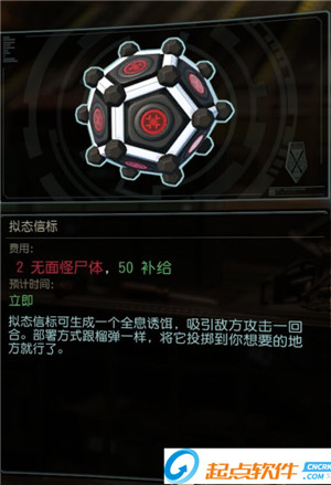 拟态信标简介:拟态信标是一个神奇的东西,首先只要50补给,只要研究解剖无面者科技就可以制造,而且召唤出来的拟态信标诱饵有固定12血量,并且99%吸引AI单位仇恨,还自带神奇的防御力。基本只要丢出信标AI单位就会不顾一切的冲向信标,长脚不站,蛇不喷毒灰人不灵能,简直是BUG一般的存在。当然也有一个神奇的单位在特殊情况下不受影响——变种人强袭枪兵,此单位对于满血单位异常执着到令人发指地步。