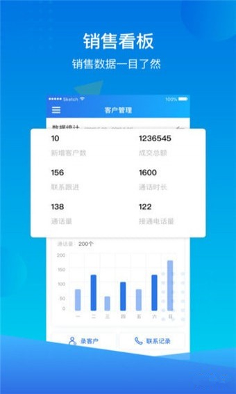 新增客户数量、成交金额、联系跟进数量、通话时长、通话数量等数据一目了然。