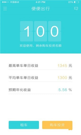 同时便便出行app也为用户闲置车辆提供托管运营服务。
