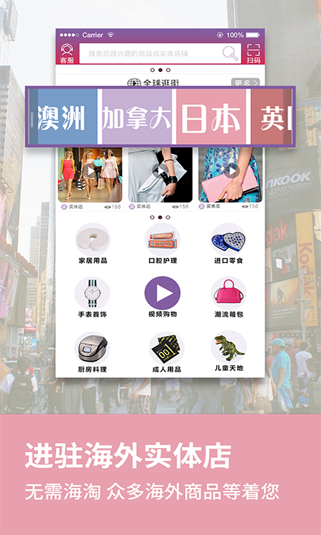 【毋须亲身去到海外】:主打海外实体店进驻,国外对实体店监管严格,正货保障,通过App与实体店交易;