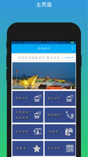 南海出行手机版为游览威海南海新区的旅客和当地居民提供出行信息和辅助,南海出行app 主要功能为公交车查询与出租车呼叫。