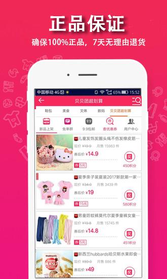贝贝团手机版是一款非常好用的购物优惠应用软件,贝贝团app为用户提供海量的淘宝精选商品,用户可以放心购买。还有许多大额的优惠券可供用户领取使用,让用户享受超值的购物体验。