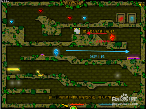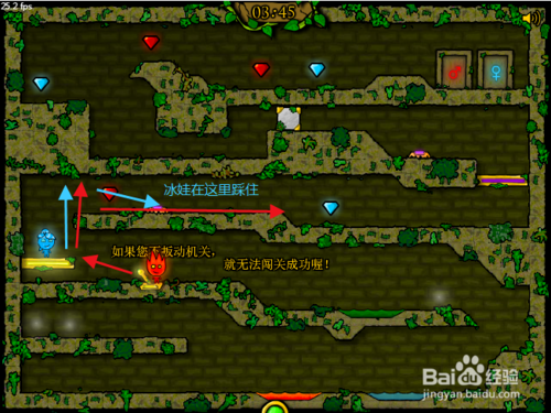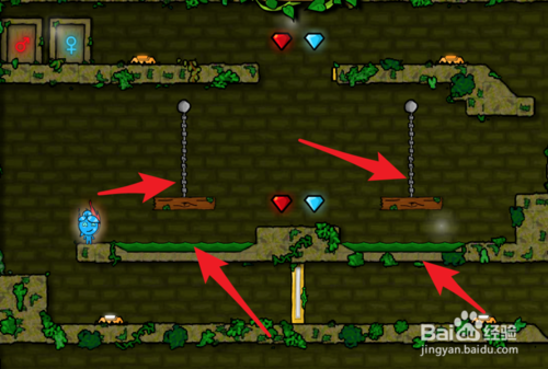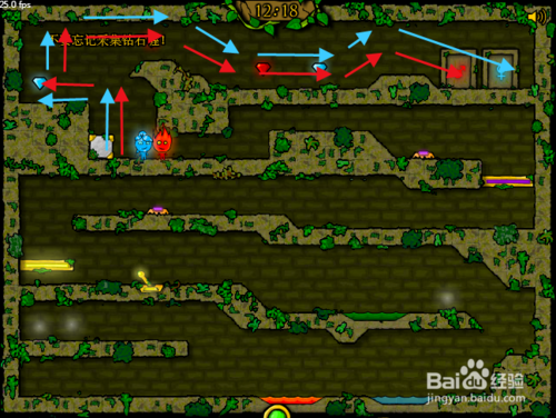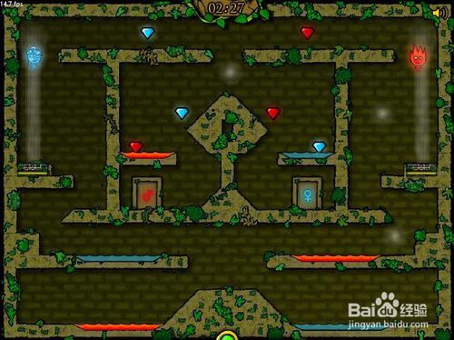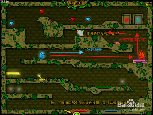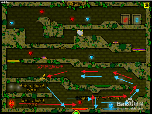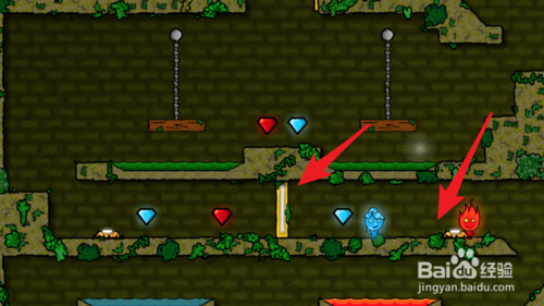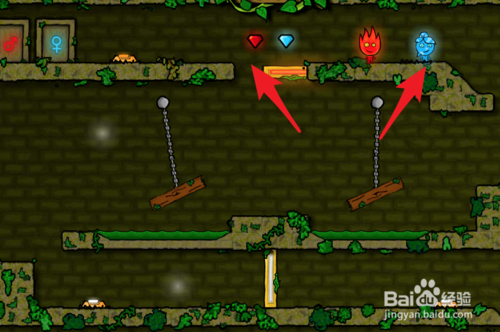 4、该FIREBOY应该来以红色标示门和Watergirl应该找到她到标有蓝色标志门的方式。在路上,这两个字符应收集具有颜色作为自己相同的钻石。你到每个门的更快的屏幕了更高的分数和排名,你会得到。