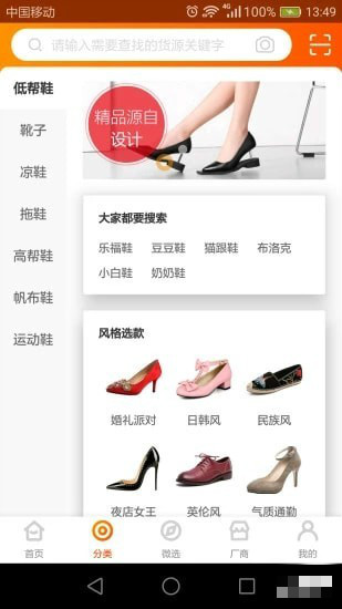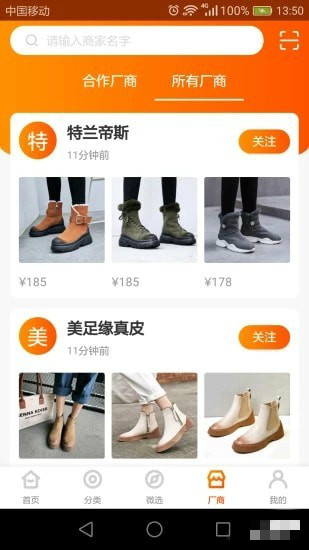 伙拼云商app是一家专为女鞋厂商和卖家搭建的撮合交易平台。伙拼平台除了对厂商的款式进行展示之外,还将采用深度验厂的方式,对厂家的开款风格、开发实力、生产实力、售后服务等多维度呈现。让卖家能够更好的选择适合自己风格、出货稳定的服务商,从而更好的实现交易。