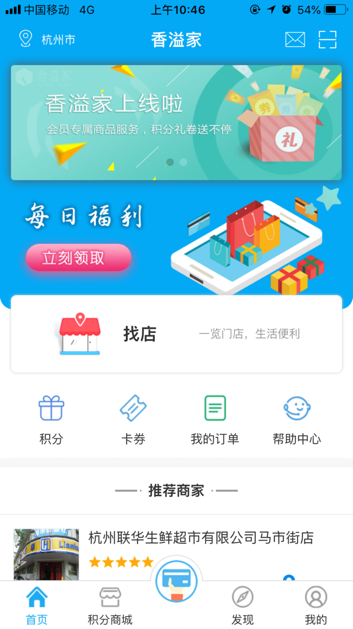 香溢家app是一款非常好用的生活服务应用软件,用户可以通过香溢家苹果版查看附近商店的优惠活动,让你每天都能买到实惠的商品。购买物品后还能获得许多积分,可以用来兑换话费和流量。