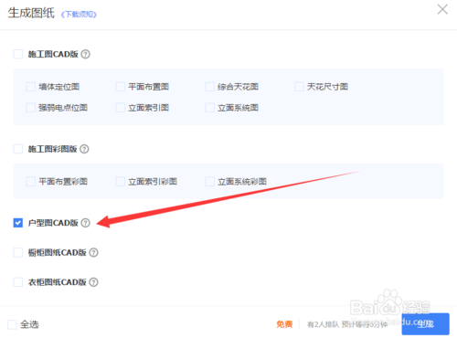 3、在弹出窗口中选择【CAD户型图】,再点击【生成】。