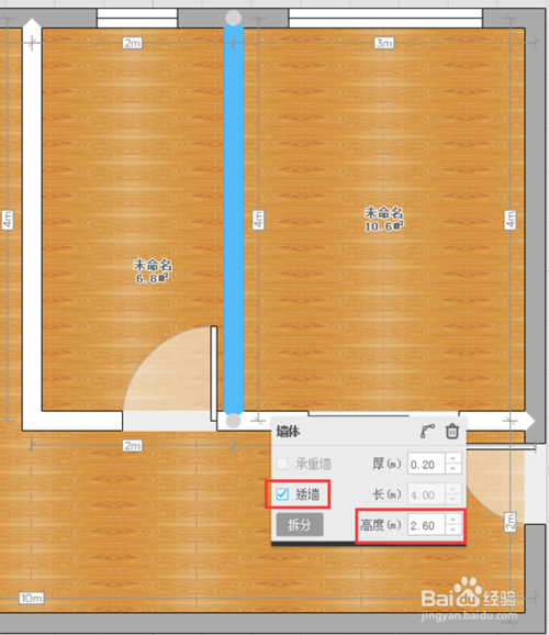 2、先当这就是个普通小户型来做,按实际情况(注意只要底层的墙高)把墙厚墙高设置好。