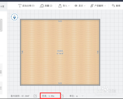 1、 首先在户型工具里画一个房间,最简单那种,层高设置为5m。
