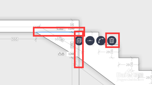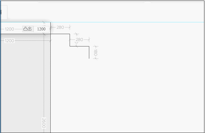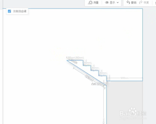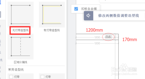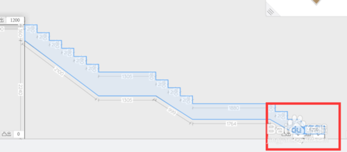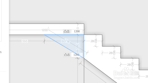8、 用无灯带造型线画好第一个台面和楼梯底的衔接部分,同样设置为凸出1200。