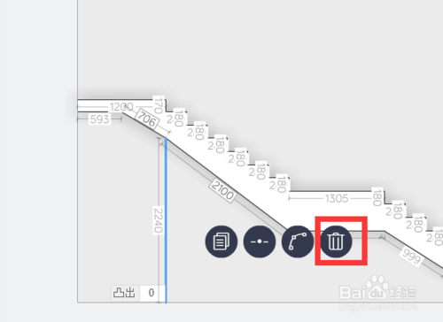 6、 从两个台面的接点向下一格一格地画台阶,这里用了280mmX180mm、