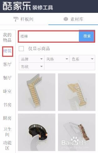 点击左边【素材库】-【硬装】分类下选择楼梯模型拖入房间即可。