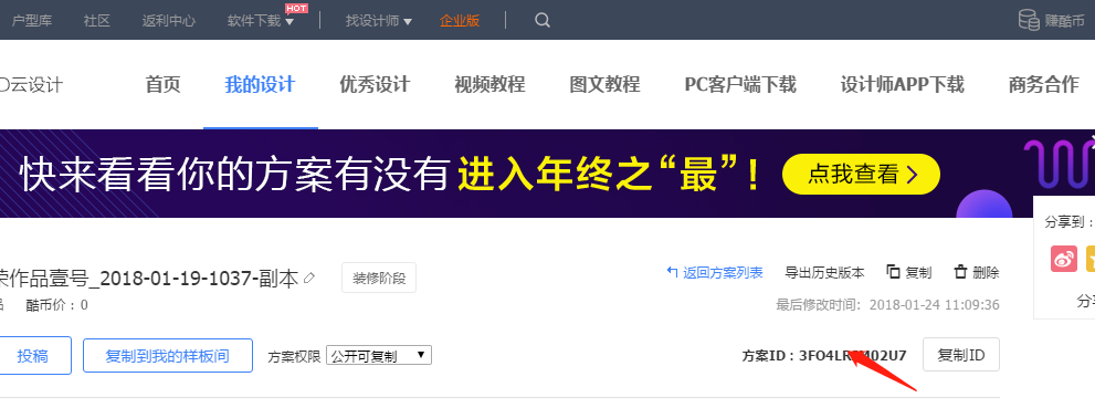 1、在方案的类型中选择公开可复制。然后在另一个账号中输入方案的id号即可快速复制方案。